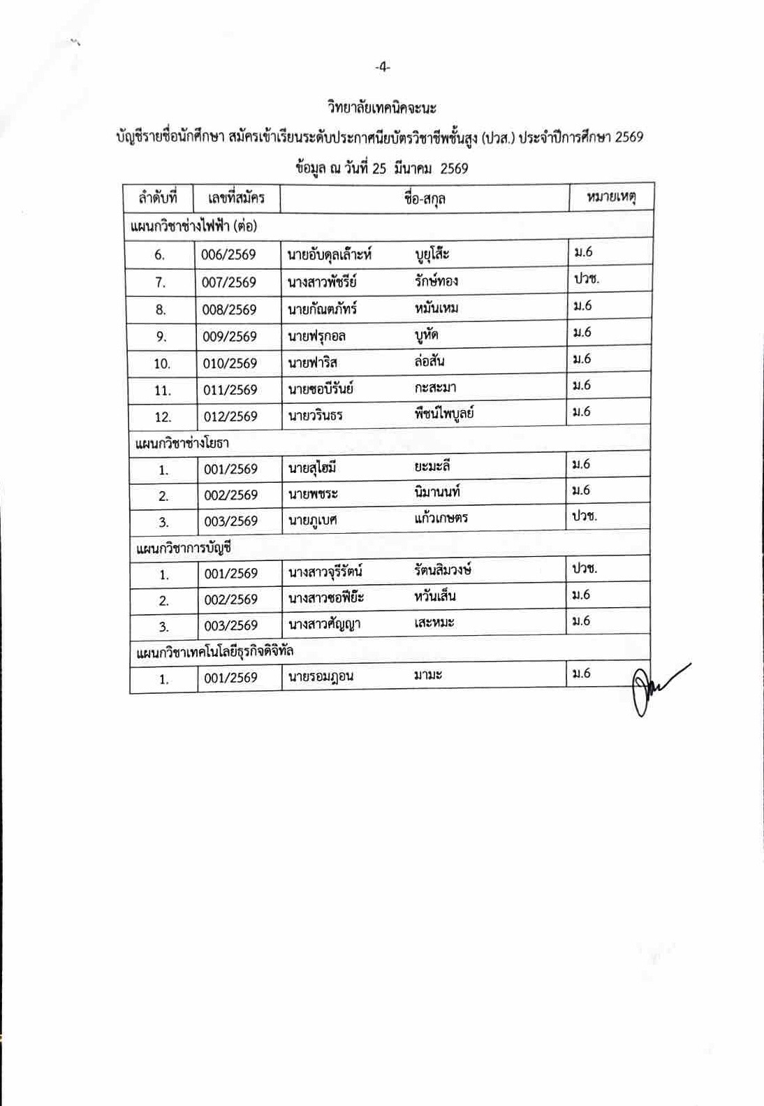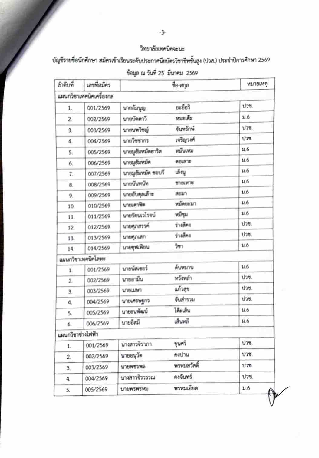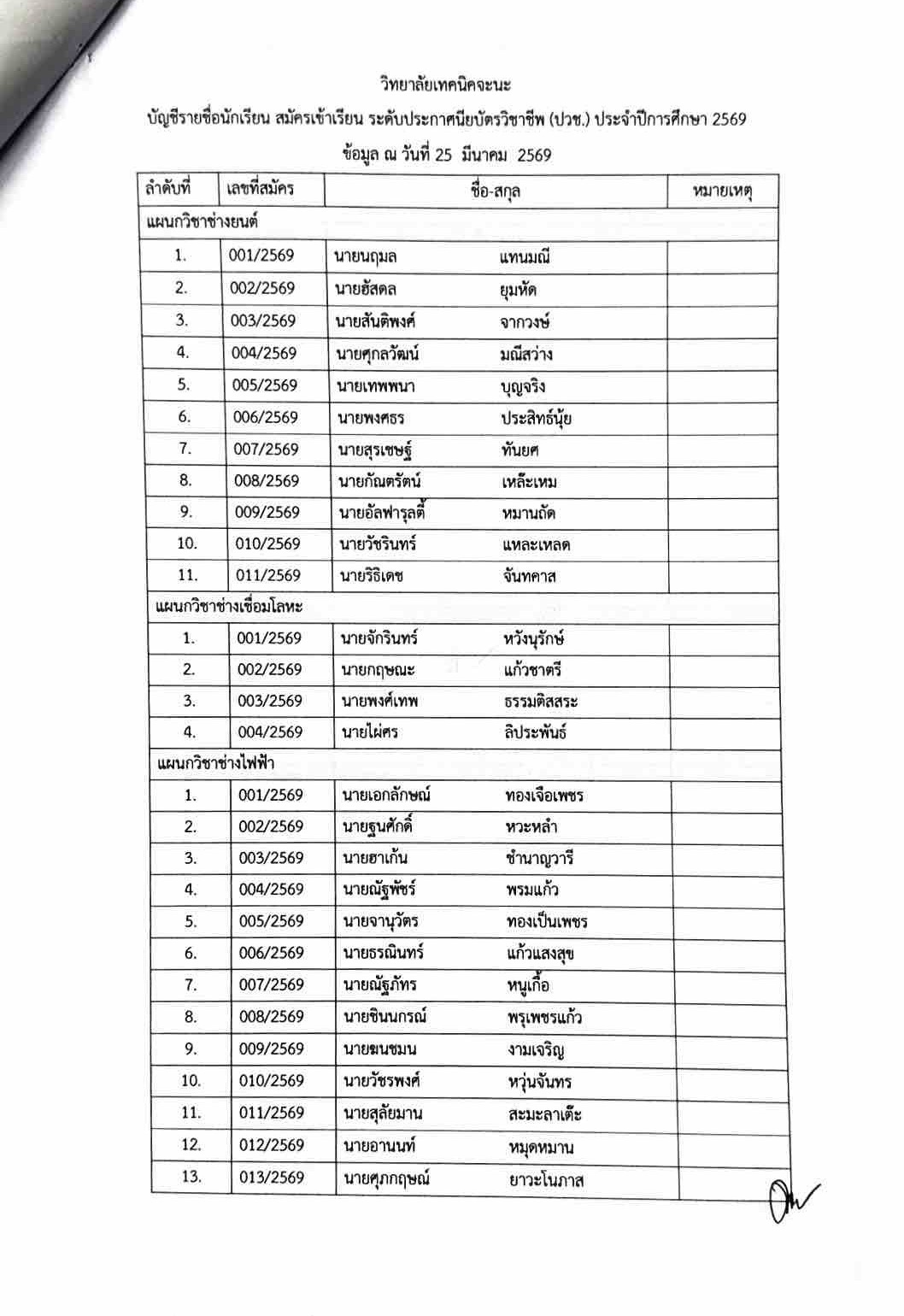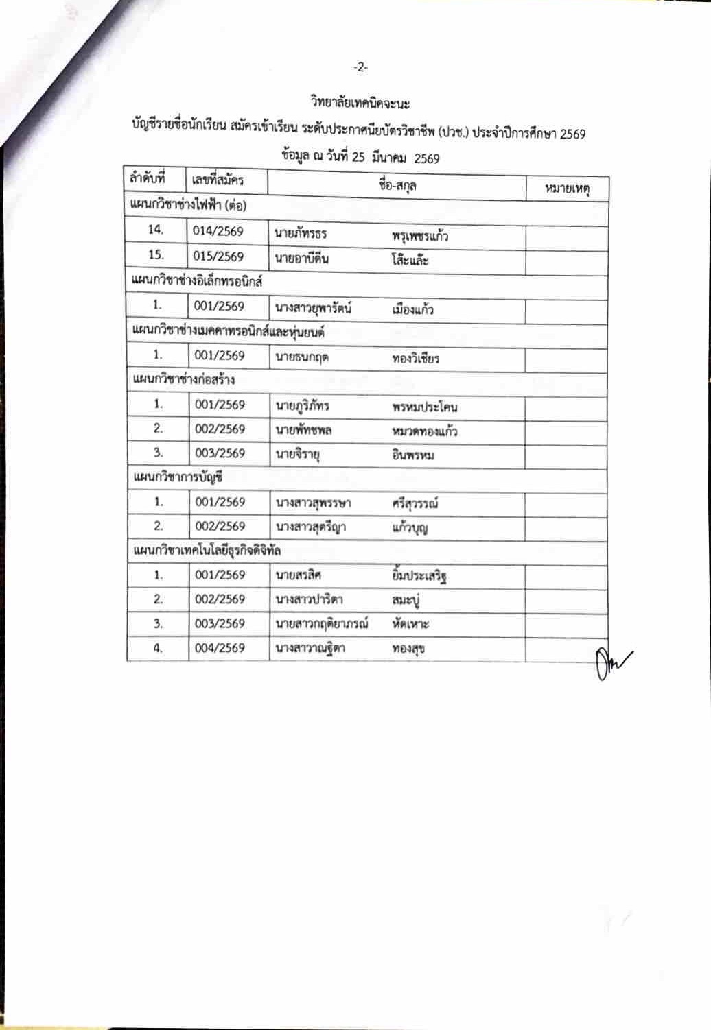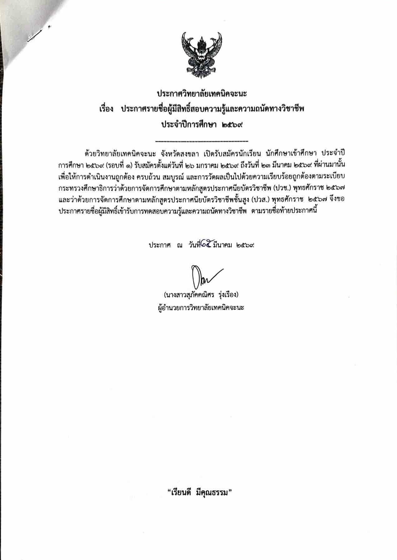 ประกาศรายชื่อผู้มีสิทธิ์สอบความรู้และความถนัดทางวิชาชีพ ประจำปีการศึกษา 2569
